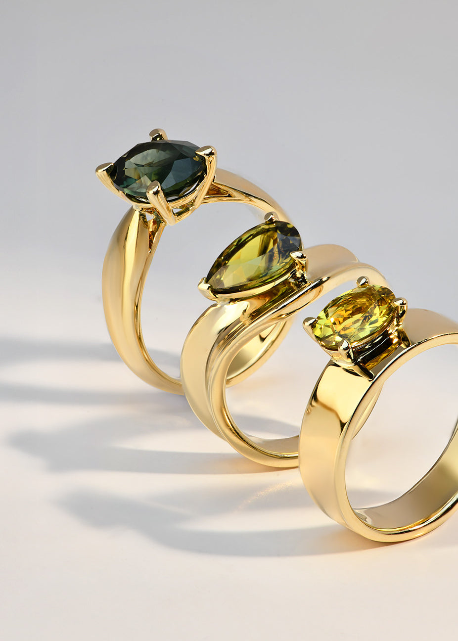 This results in an exquisite, vibrant selection of Australia's finest sapphires which are jewellery ready! We then choose the most beautiful gemstones to set in our jewellery designs, and keep aside a special collection for bespoke pieces!